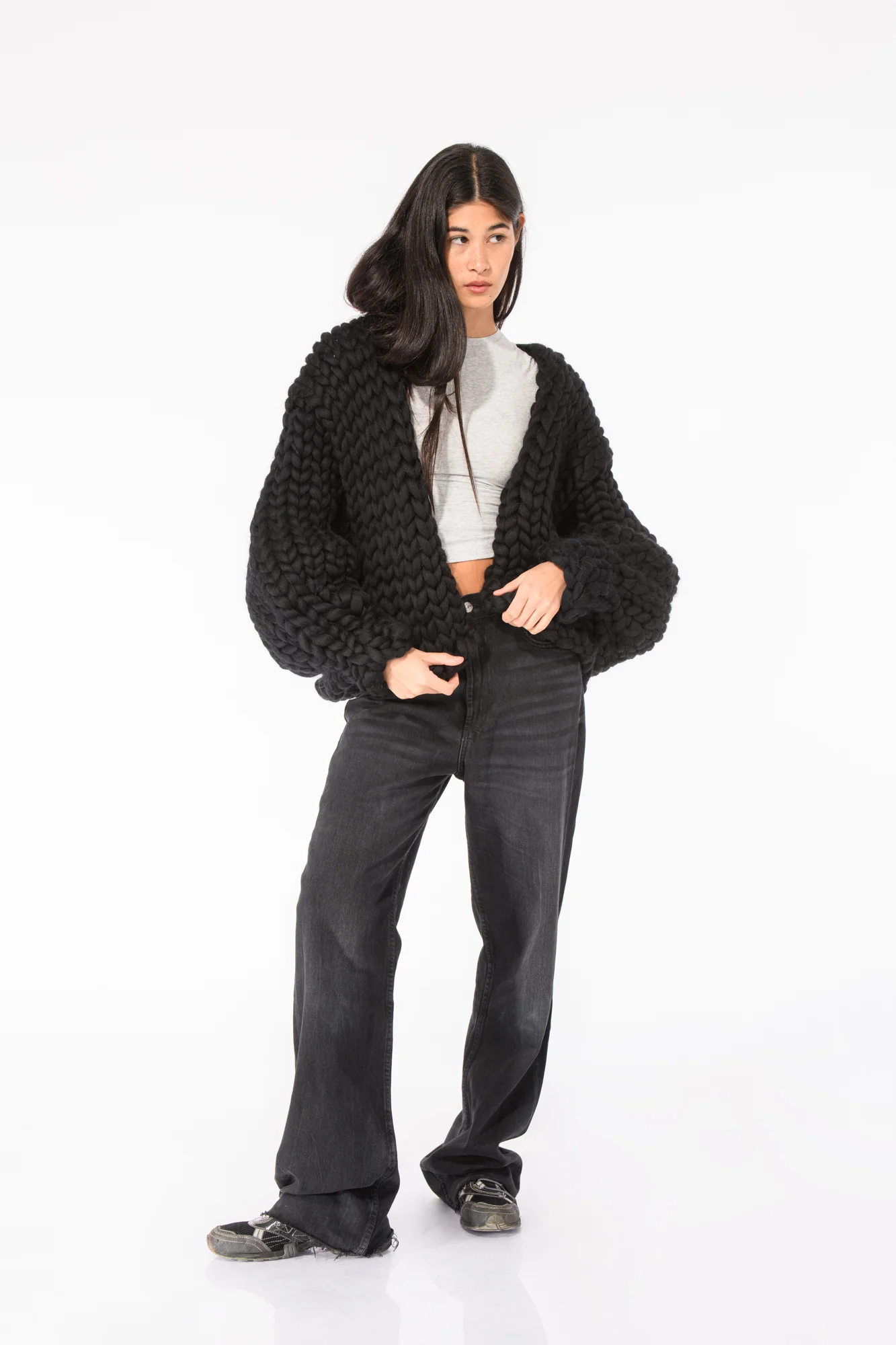 Introducing the Black Colossal Knit Cardigan. A classic statement piece in our famous, signature design.