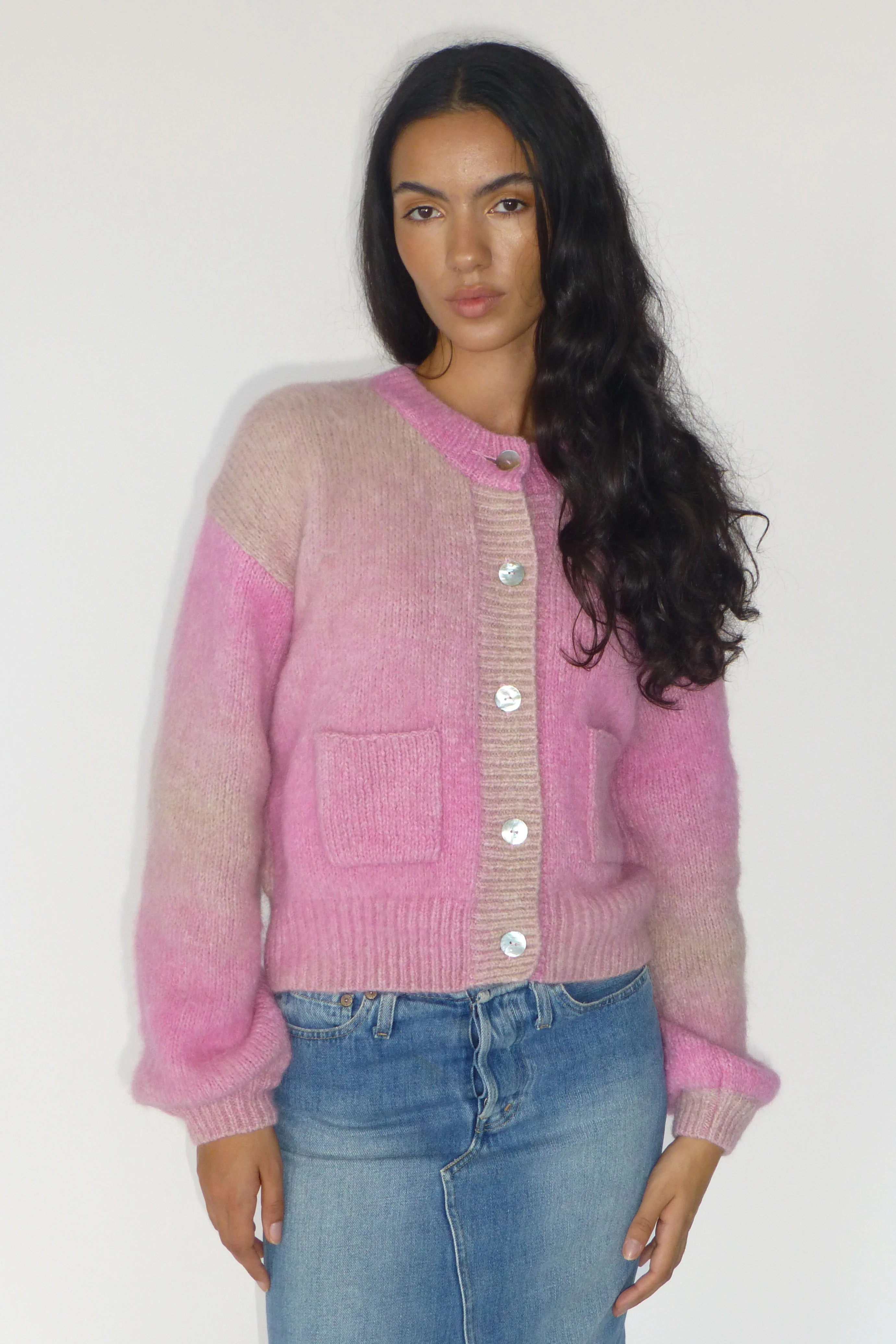 The Flora Knit Cardigan is crafted from Alpaca wool, giving the cardigan a mohair-like texture. This cardigan is a transeasonal option as the alpaca wool is both suitable for warmer and colder climates. Due to the unique blend of colours in the wool, each cardigan is one-of-a-kind with subtle colour variations.