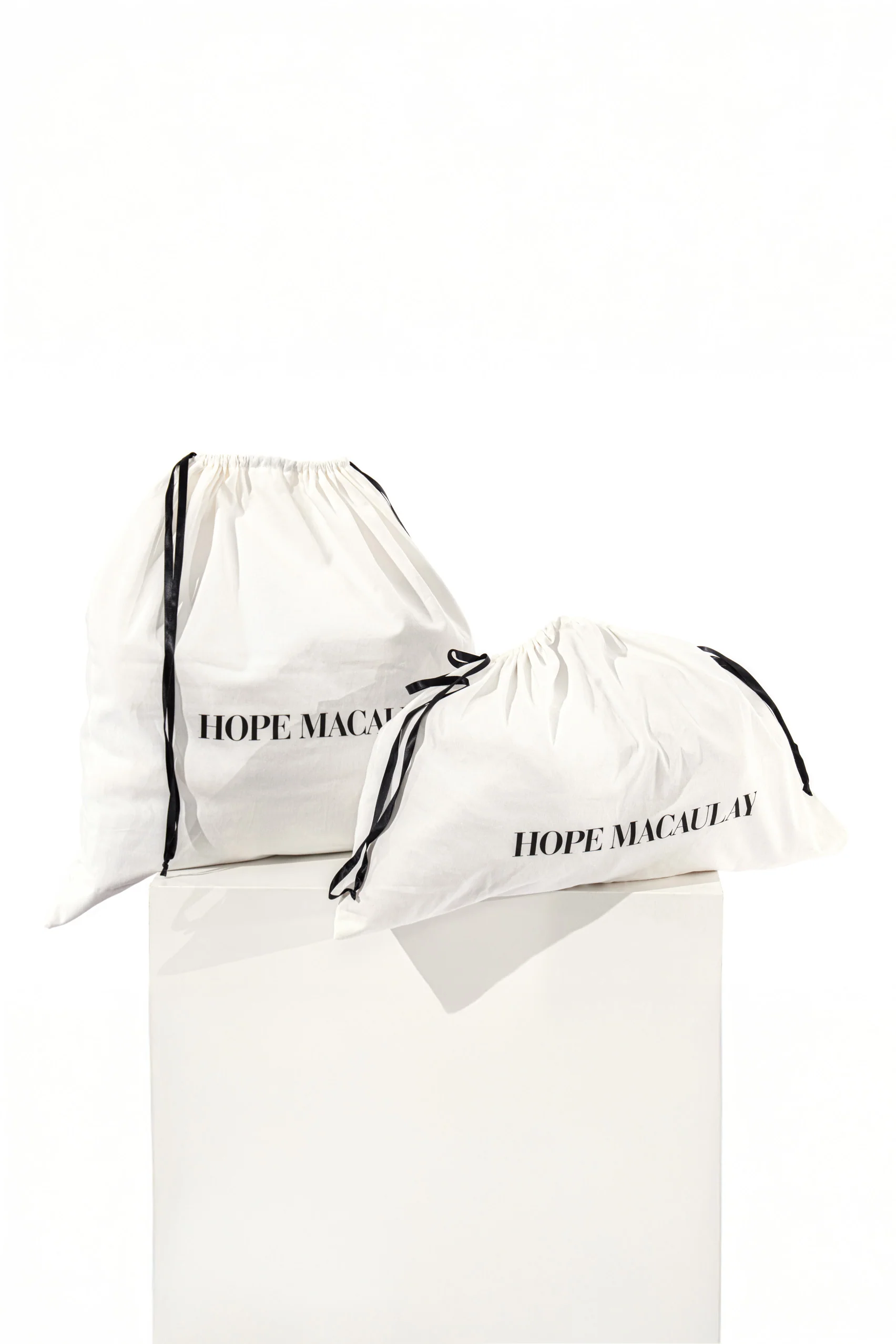 Store your Hope Macaulay pieces beautifully and securely with our signature Knitwear Storage Bags. Made from soft, breathable cotton, these reusable fabric bags are designed to protect your handcrafted knitwear - keeping it tidy, dust-free and safe for seasons to come.