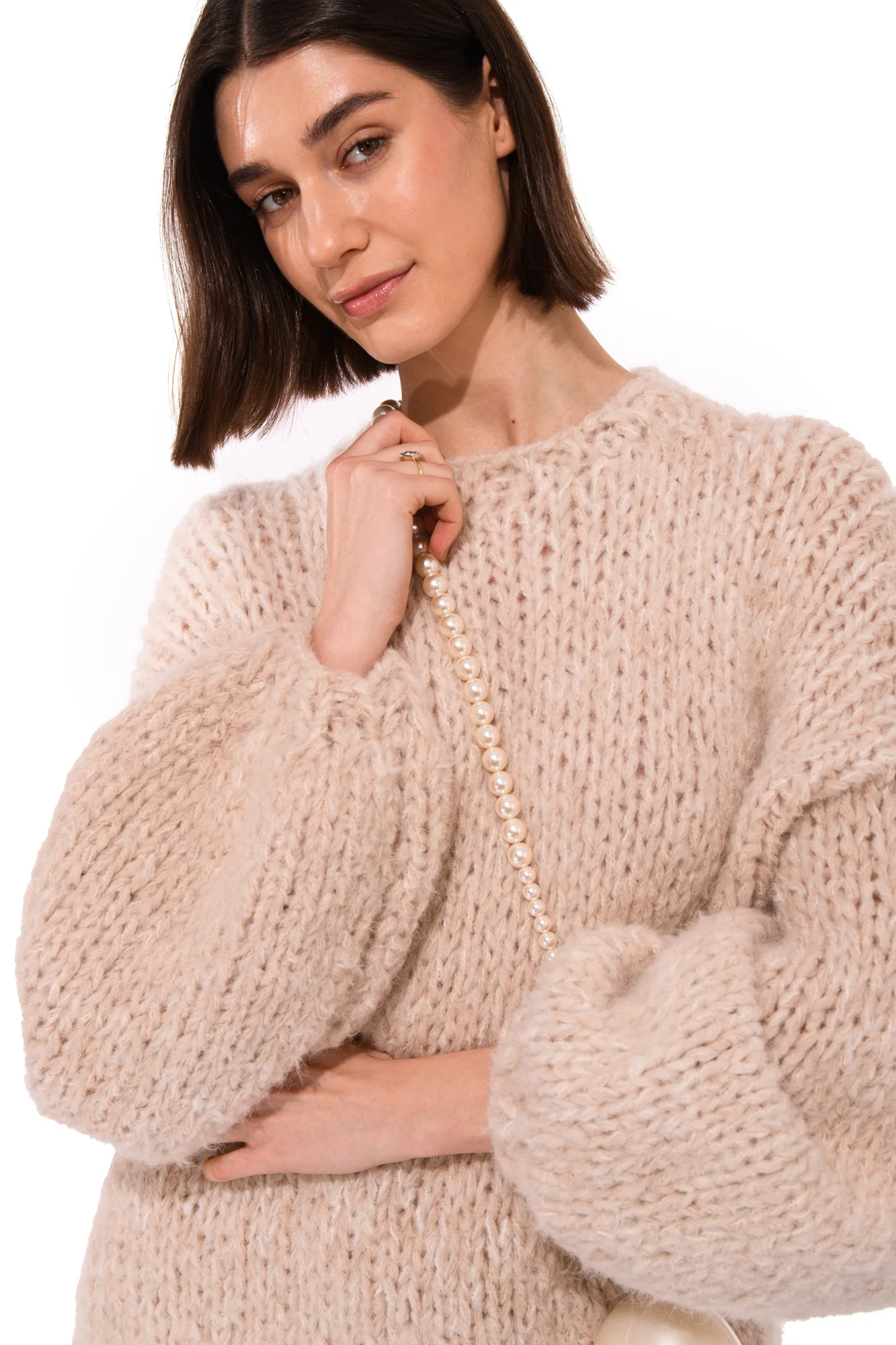 Marie Fluffy Knit Sweater, handmade by us for the perfect casual bridal look. Soft, timeless, and thoughtfully designed.